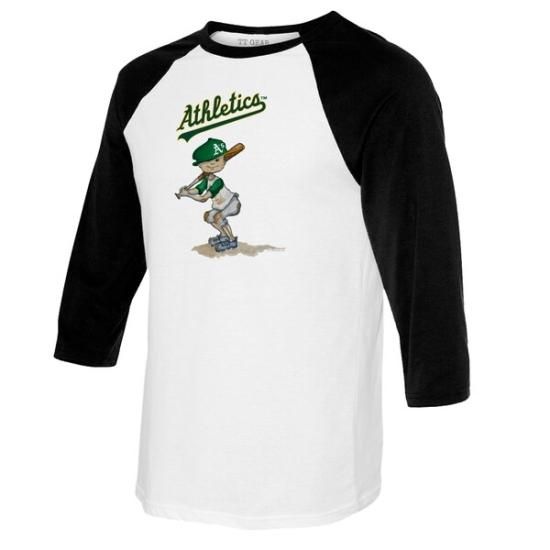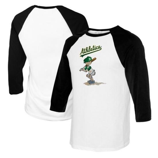 アスレチックス タイニー ターニプ レディース Slugger 3/4-スリーブ ラグラン Tシャツ - ホワイト/ブラックは、メジャーリーグ公認のMLBグッズです。