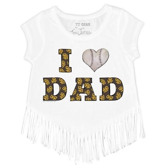 サンディエゴ・パドレス タイニー ターニプ ユース アイ ラブ Dad Fringe Tシャツ - ホワイトは、メジャーリーグ公認のMLBグッズです。