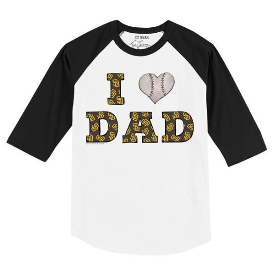 サンディエゴ・パドレス タイニー ターニプ ユース アイ ラブ Dad 3/4-スリーブ ラグラン Tシャツ - ホワイト/ブラックは、メジャーリーグ公認のMLBグッズです。