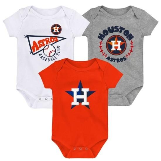 ヒューストン・アストロズ キッズ ビッゲスト リトル ファン 3パック ロンパース セット - オレンジ/ホワイト/ヘザー グレーは、メジャーリーグ公認のMLBグッズです。
