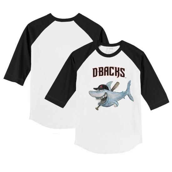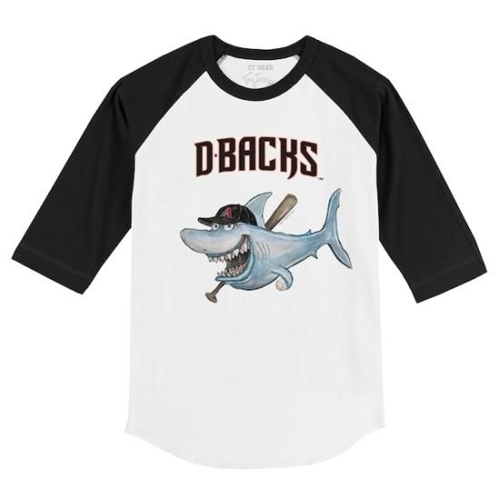 アリゾナ・ダイヤモンドバックス タイニー ターニプ キッズ(歩き始めの子供) Shark 3/4-スリーブ ラグラン Tシャツ - ホワイト/ブラックは、メジャーリーグ公認のMLBグッズです。
