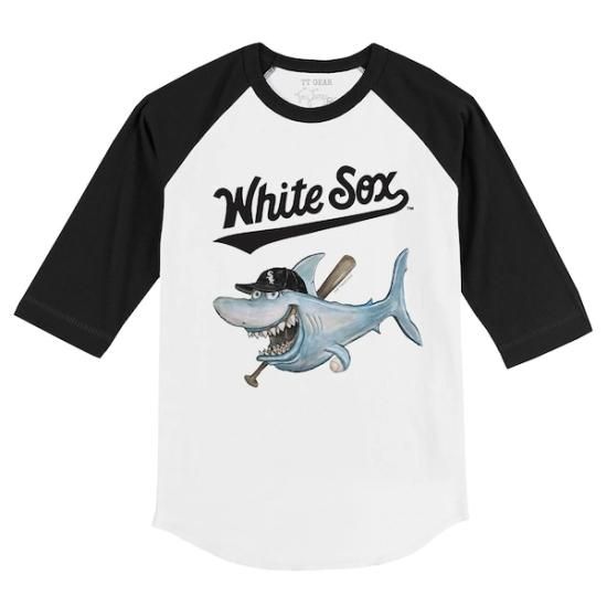 シカゴ・ホワイトソックス タイニー ターニプ キッズ(歩き始めの子供) Shark 3/4-スリーブ ラグラン Tシャツ - ホワイト/ブラックは、メジャーリーグ公認のMLBグッズです。