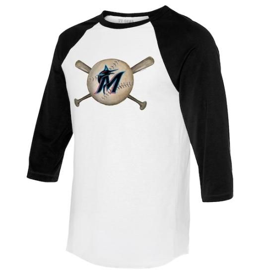 マイアミ・マーリンズ タイニー ターニプ レディース ベースボール Cross バット 3/4-スリーブ ラグラン Tシャツ - ホワイト/ブラックは、メジャーリーグ公認のMLBグッズです。