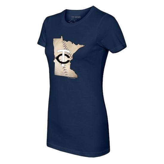 ミネソタ・ツインズ タイニー ターニプ レディース ステート アウトライン Tシャツ - ネイビー