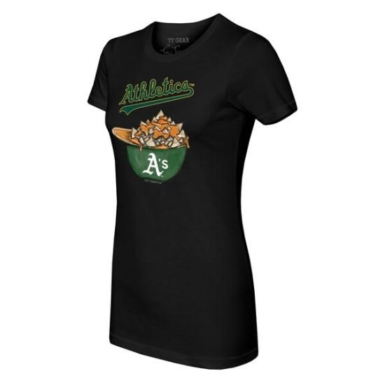 アスレチックス タイニー ターニプ レディース Nacho ヘルメット Tシャツ - ブラックは、メジャーリーグ公認のMLBグッズです。