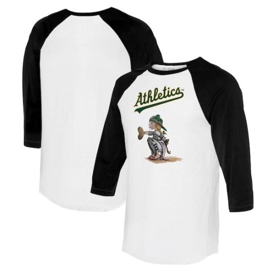 アスレチックス タイニー ターニプ レディース Kアットe 3/4-スリーブ ラグラン Tシャツ - ホワイト/ブラックは、メジャーリーグ公認のMLBグッズです。