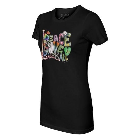 アスレチックス タイニー ターニプ レディース Peace ラブ ベースボール フィットタイプ Tシャツ - ブラックは、メジャーリーグ公認のMLBグッズです。
