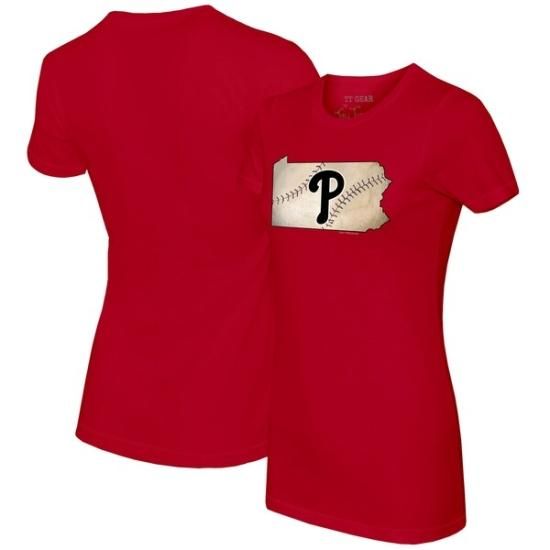 フィラデルフィア・フィリーズ タイニー ターニプ レディース ステート アウトライン Tシャツ - レッドは、メジャーリーグ公認のMLBグッズです。