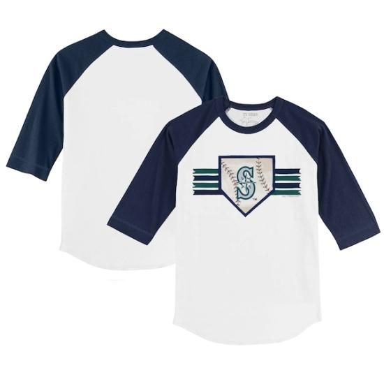 シアトル・マリナーズ タイニー ターニプ キッズ(歩き始めの子供) ベース ストライプ 3/4-スリーブ ラグラン Tシャツ - ホワイト/ネイビーは、メジャーリーグ公認のMLBグッズです。
