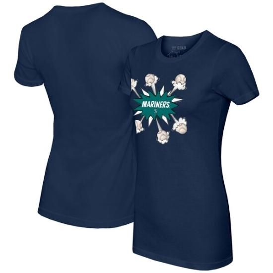 シアトル・マリナーズ タイニー ターニプ レディース ベースボール Pow Tシャツ - ネイビー