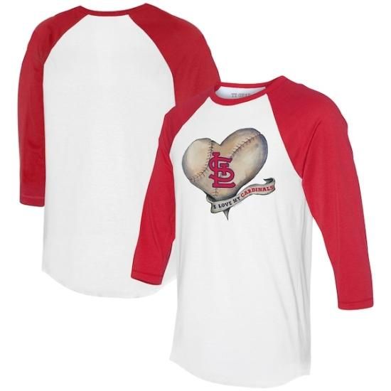 セントルイス・カージナルス タイニー ターニプ レディース ハート バナー 3/4-スリーブ ラグラン Tシャツ - ホワイト/レッドは、メジャーリーグ公認のMLBグッズです。