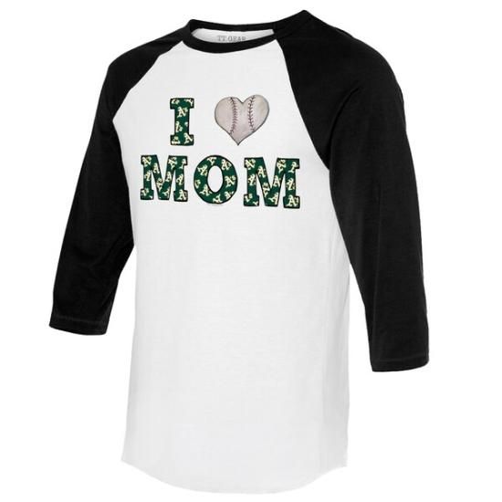 アスレチックス タイニー ターニプ レディース アイ ラブ マム 3/4-スリーブ ラグラン Tシャツ - ホワイト/ブラックは、メジャーリーグ公認のMLBグッズです。