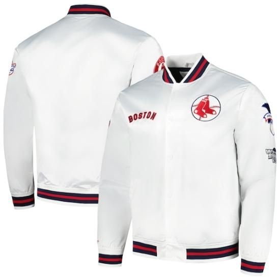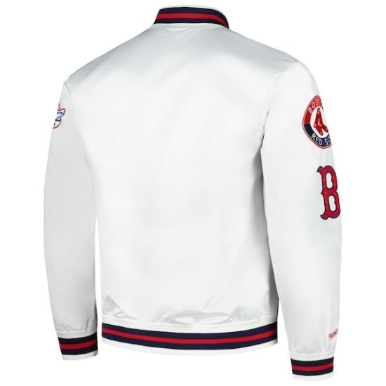 ボストン・レッドソックス ミッチェル&ネス シティ コレクション サテン フル-スナップ ヴィーシティ ジャケット - ホワイトは、メジャーリーグ公認のMLBグッズです。