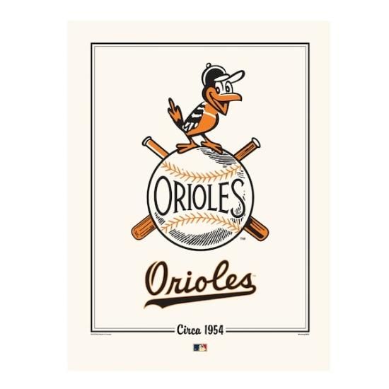 ボルティモア・オリオールズ 12" x 16" 1954 クーパーズタウン ロゴ アート プリント