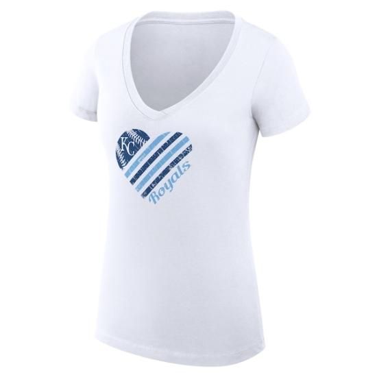カンザスシティ・ロイヤルズ G-III 4Her by カール バンクス レディース Super-スリムフィット 軽量 ハート Vネック Tシャツ - ホワイトは、メジャーリーグ公認のMLBグッズです。