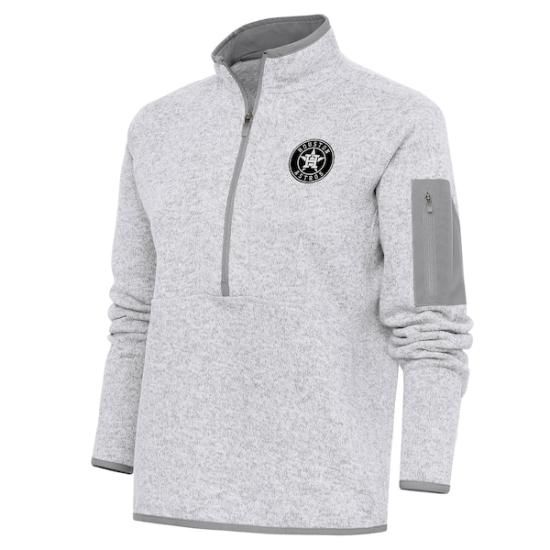 ヒューストン・アストロズ アンティグア レディース ブラシed メタリック フォーチュン ハーフジップ プルオーバー ジャケット - ヘザー グレーは、メジャーリーグ公認のMLBグッズです。