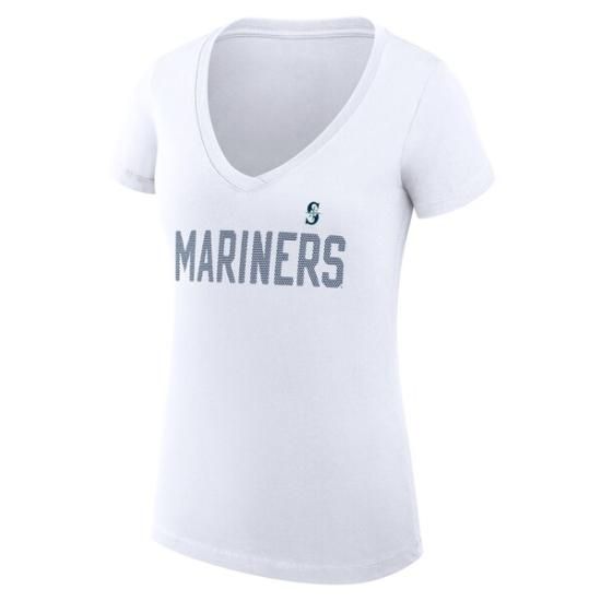シアトル・マリナーズ G-III 4Her by カール バンクス レディース Super-スリムフィット 軽量 ドット プリント Vネック Tシャツ - ホワイトは、メジャーリーグ公認のMLBグッズです。