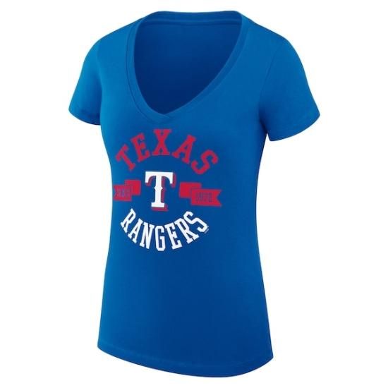 テキサス・レンジャーズ G-III 4Her by カール バンクス レディース Super-スリムフィット 軽量 シティ グラフィック Vネック Tシャツ - ロイヤルは、メジャーリーグ公認のMLBグッズです。