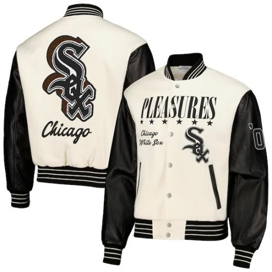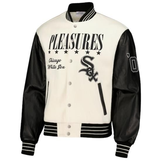 シカゴ・ホワイトソックス PLEASURES フル-スナップ ヴィーシティ ジャケット - ホワイトは、メジャーリーグ公認のMLBグッズです。
