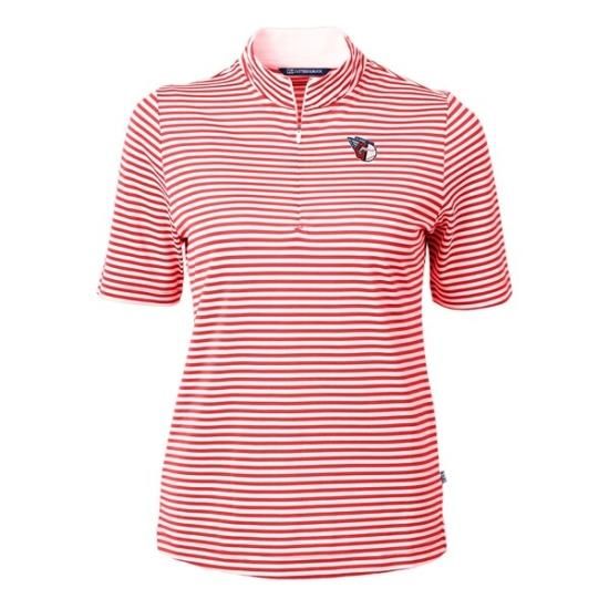 クリーブランド・ガーディアンズ Cutter &Buck レディース Virtue Eco ピケ ストライプ トップ - レッドは、メジャーリーグ公認のMLBグッズです。