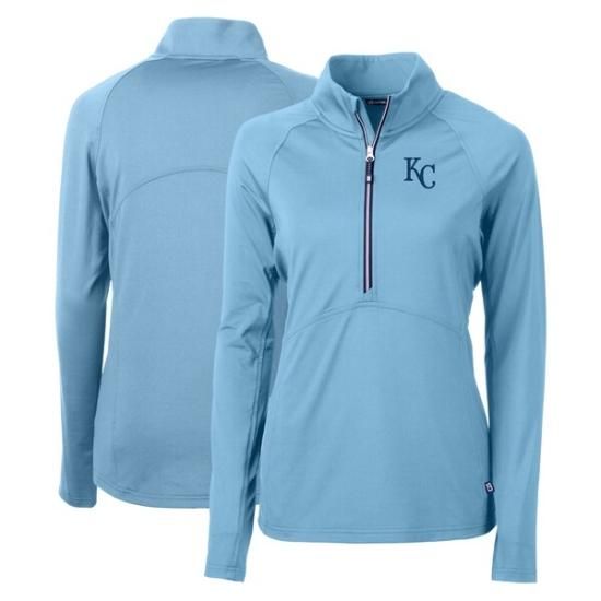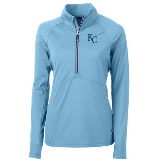カンザスシティ・ロイヤルズ Cutter &Buck レディース Adapt Eco ニット ストレッチ Recycled ハーフジップ プルオーバー トップ - ライト ブルーは、メジャーリーグ公認のMLBグッズです。