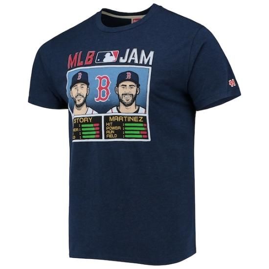 トレバー・ストーリー & J.D.マルティネス ボストン・レッドソックス Homage MLB Jam トライブレンド Tシャツ - ネイビーは、メジャーリーグ公認のMLBグッズです。