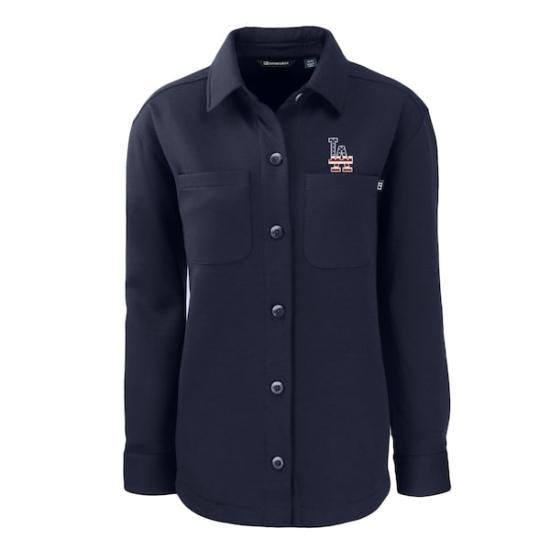 商品説明 ロサンゼルス・ドジャース Cutter &Buck レディース アメリカna Roam Eco ニット フル-スナップ Shacket - ネイビーは、メジャーリーグ公認のMLBグッズです。