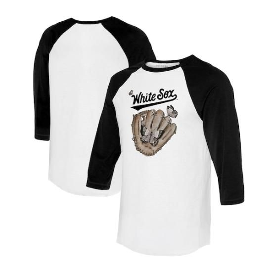 シカゴ・ホワイトソックス タイニー ターニプ ユニセックス バタフライ グローブ 3/4-スリーブ ラグラン Tシャツ - ホワイト/ブラックは、メジャーリーグ公認のMLBグッズです。