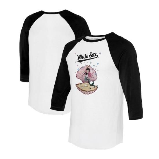 シカゴ・ホワイトソックス タイニー ターニプ ユニセックス ミーrmaid 3/4-スリーブ ラグラン Tシャツ - ホワイト/ブラックは、メジャーリーグ公認のMLBグッズです。