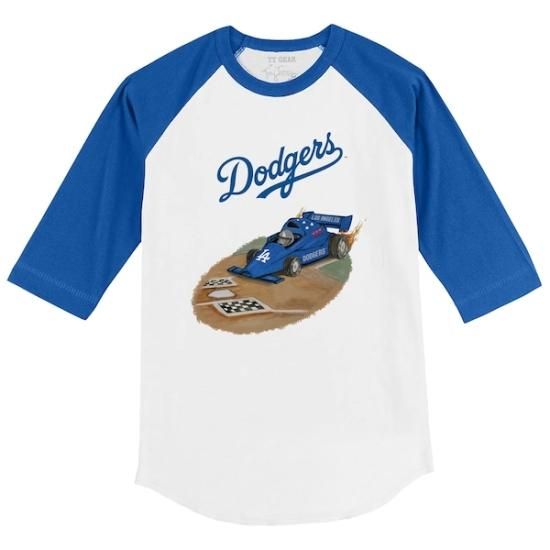 ロサンゼルス・ドジャース タイニー ターニプ キッズ(歩き始めの子供) Race カー 3/4-スリーブ ラグラン Tシャツ - ホワイト/ロイヤルは、メジャーリーグ公認のMLBグッズです。