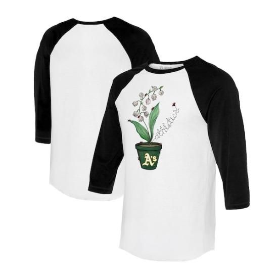 アスレチックス タイニー ターニプ ユニセックス Lilies & Ladybugs 3/4-スリーブ ラグラン Tシャツ - ホワイト/ブラックは、メジャーリーグ公認のMLBグッズです。
