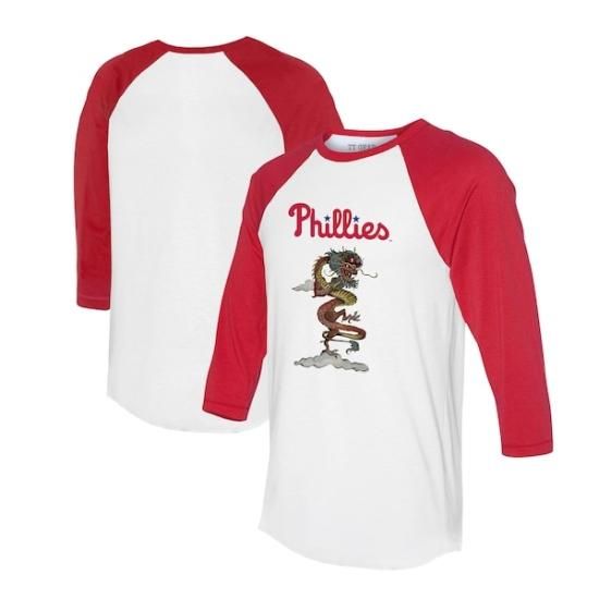 フィラデルフィア・フィリーズ タイニー ターニプ ユニセックス 2024 イヤー オブ the Dragオン 3/4-スリーブ ラグラン Tシャツ - ホワイト/レッドは、メジャーリーグ公認のMLBグッズです。