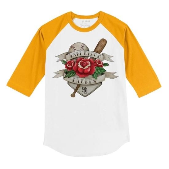 商品説明 サンディエゴ・パドレス タイニー ターニプ ユース Tアットトゥーo ローズ 3/4-スリーブ ラグラン Tシャツ - ホワイト/ゴールドは、メジャーリーグ公認のMLBグッズです。