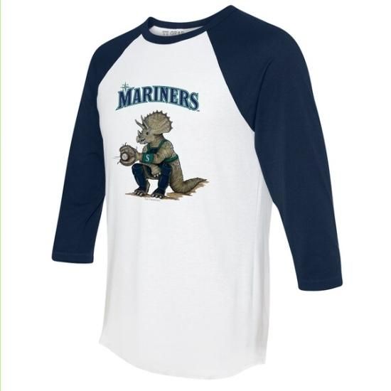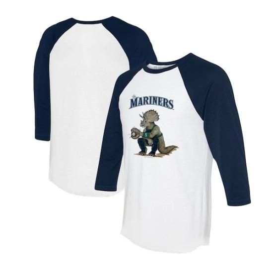 シアトル・マリナーズ タイニー ターニプ ユニセックス Triceraトゥーps 3/4-スリーブ ラグラン Tシャツ - ホワイト/ネイビーは、メジャーリーグ公認のMLBグッズです。