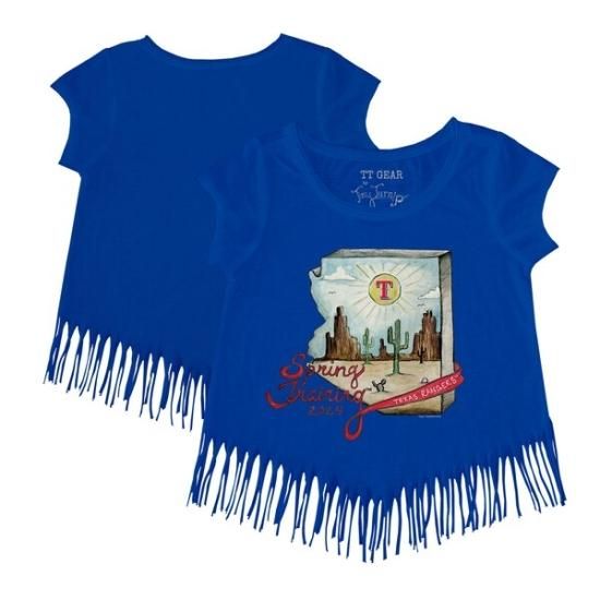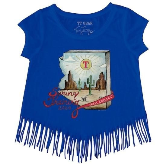 テキサス・レンジャーズ タイニー ターニプ ガール ユース 2024 スプリングトレーニング カクタスリーグ Fringe Tシャツ - ロイヤルは、メジャーリーグ公認のMLBグッズです。