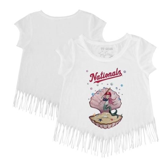 商品説明 ワシントン・ナショナルズ タイニー ターニプ ガール キッズ(歩き始めの子供) ミーrmaid Fringe Tシャツ - ホワイトは、メジャーリーグ公認のMLBグッズです。