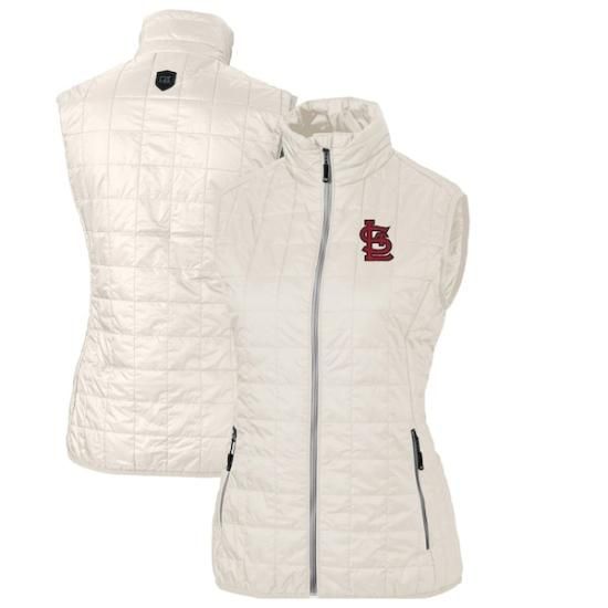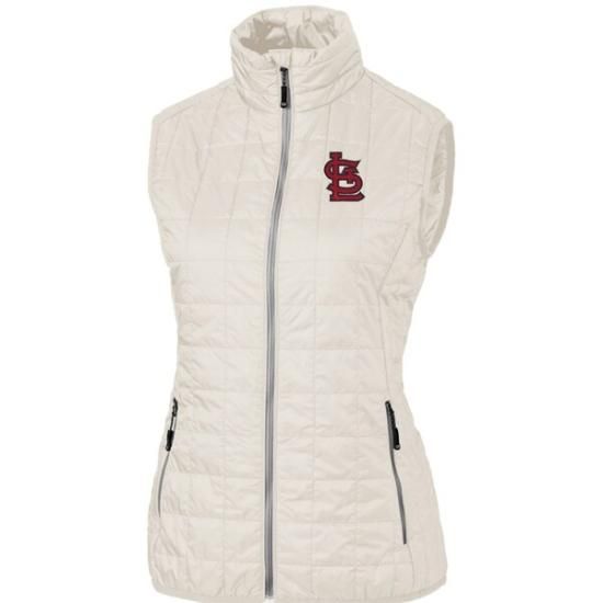 セントルイス・カージナルス Cutter &Buck レディース レインier PrimaLオブt Eco フル-ジップ パフer ベスト - クリームは、メジャーリーグ公認のMLBグッズです。