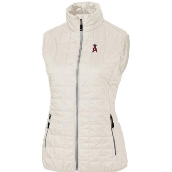 ロサンゼルス・エンゼルス Cutter &Buck レディース レインier PrimaLオブt Eco フル-ジップ パフer ベスト - クリームは、メジャーリーグ公認のMLBグッズです。