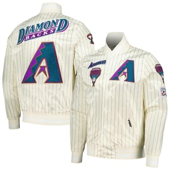 アリゾナ・ダイヤモンドバックス プロ スタンダード クーパーズタウン コレクション ピンストライプ レトロ クラシック サテン フル-スナップ ジャケット - クリームは、メジャーリーグ公認のMLBグッズです。