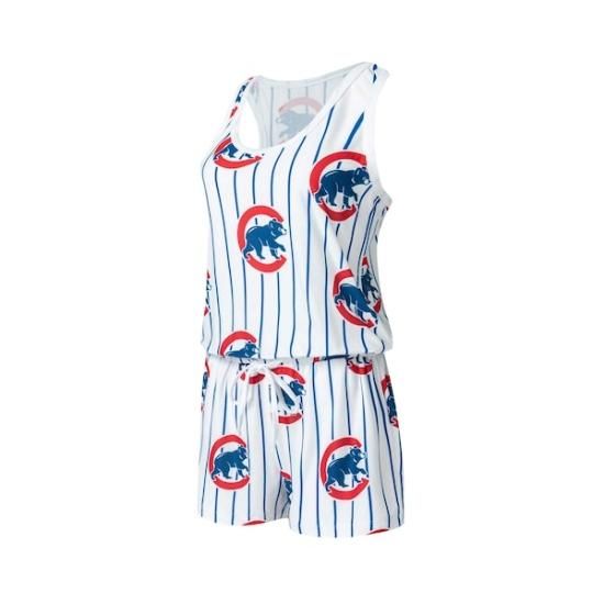 シカゴ・カブス コンセプト スポーツ レディース リール ピンストライプ ニット ロンパース - ホワイトは、メジャーリーグ公認のMLBグッズです。