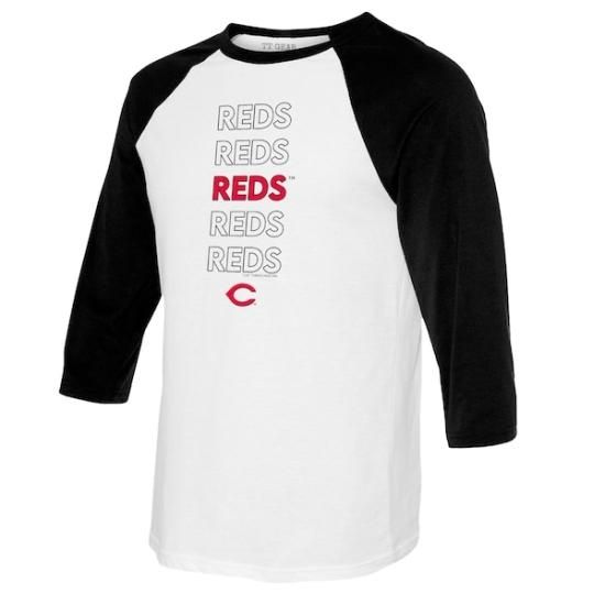 シンシナティ・レッズ タイニー ターニプ ユース Stacked ラグラン 3/4 スリーブ Tシャツ - ホワイト/ブラックは、メジャーリーグ公認のMLBグッズです。