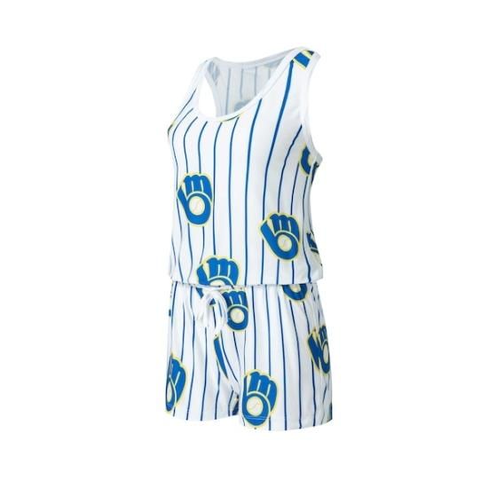 ミルウォーキー・ブルワーズ コンセプト スポーツ レディース リール ピンストライプ ニット ロンパ