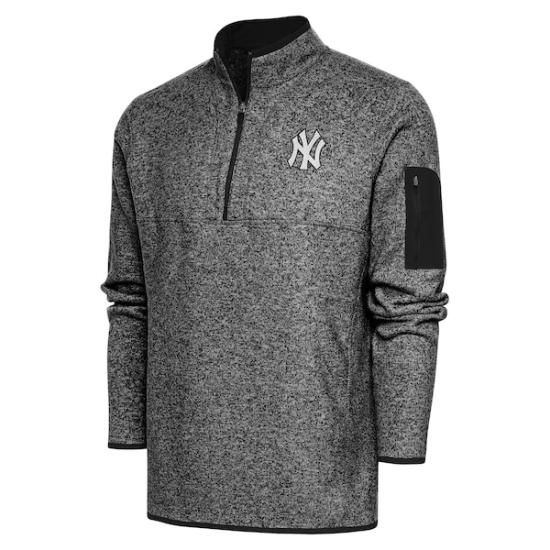 ニューヨーク・ヤンキース アンティグア メタリック フォーチュン クォーター-ジップ プルオーバー ジャケット - ヘザー ブラックは、メジャーリーグ公認のMLBグッズです。