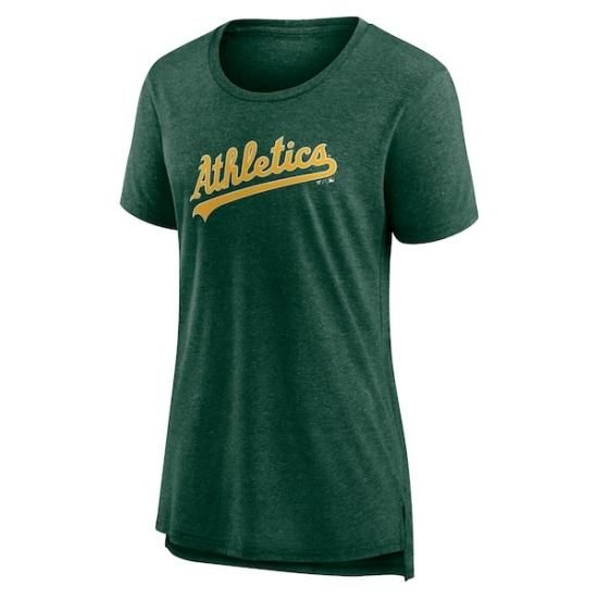 アスレチックス レディース オフィシャル ワードマーク トライブレンド Tシャツ - ヘザー グリーンは、メジャーリーグ公認のMLBグッズです。