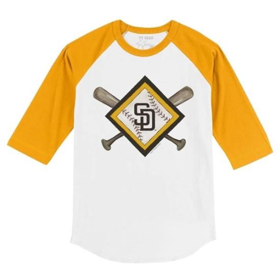 サンディエゴ・パドレス タイニー ターニプ キッズ(歩き始めの子供) ダイヤモンド Cross バット 3/4-スリーブ ラグラン Tシャツ - ホワイト/ゴールドは、メジャーリーグ公認のMLBグッズです。