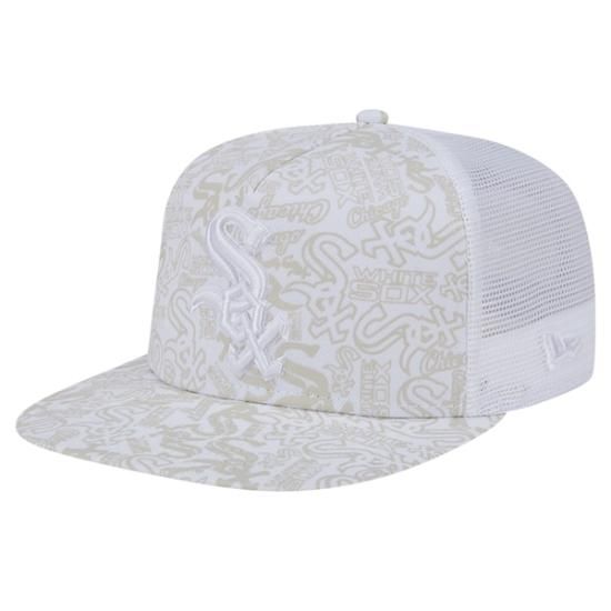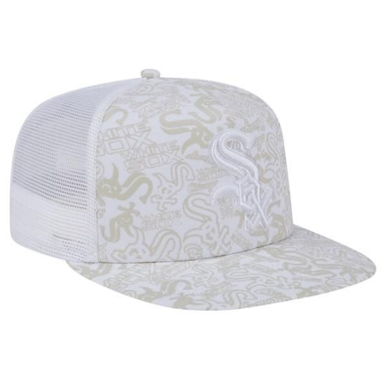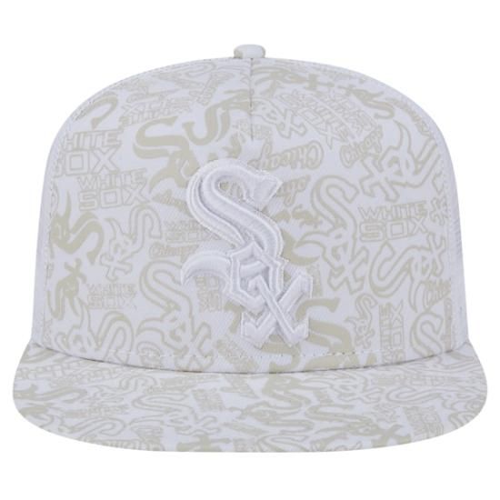 シカゴ・ホワイトソックス New Era(ニューエラ) ロゴ Dunes A-フレーム トラッカー 9FIFTY スナップバック ハット - ホワイトは、メジャーリーグ公認のMLBグッズです。