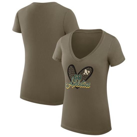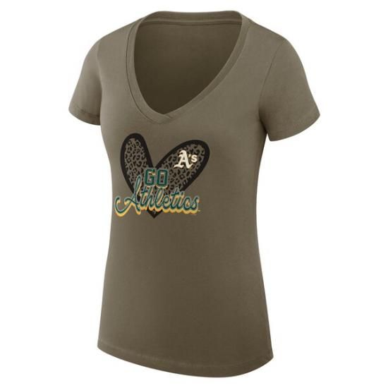 アスレチックス G-III 4Her by カール バンクス レディース Super-スリムフィット 軽量 レオパード ハート Vネック Tシャツ - グリーンは、メジャーリーグ公認のMLBグッズです。