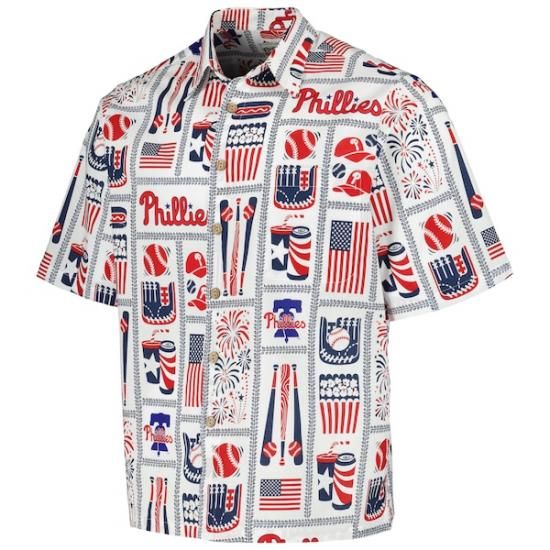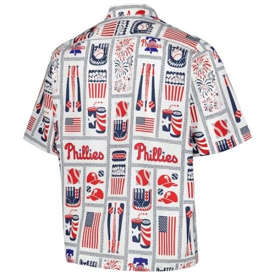 フィラデルフィア・フィリーズ Reyn Spoオンer アメリカna ボタン-アップ シャツ - ホワイトは、メジャーリーグ公認のMLBグッズです。