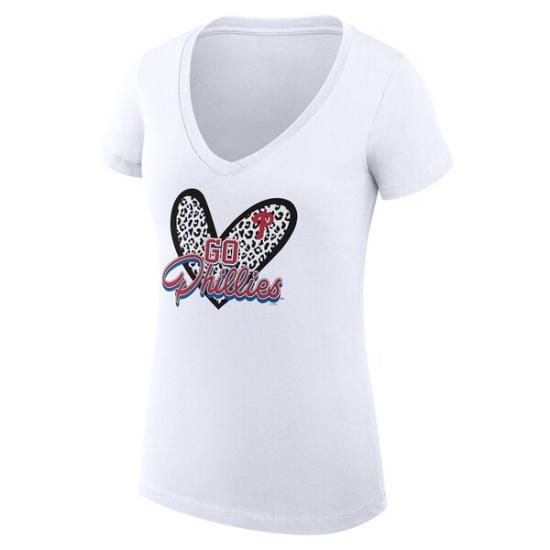 フィラデルフィア・フィリーズ G-III 4Her by カール バンクス レディース Super-スリムフィット 軽量 レオパード ハート Vネック Tシャツ - ホワイトは、メジャーリーグ公認のMLBグッズです。