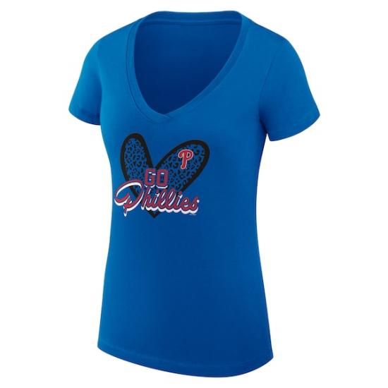 フィラデルフィア・フィリーズ G-III 4Her by カール バンクス レディース Super-スリムフィット 軽量 レオパード ハート Vネック Tシャツ - ロイヤルは、メジャーリーグ公認のMLBグッズです。